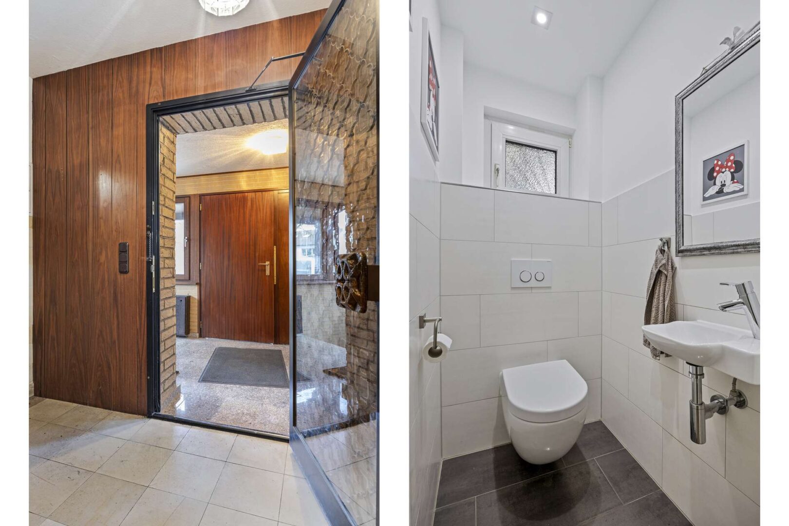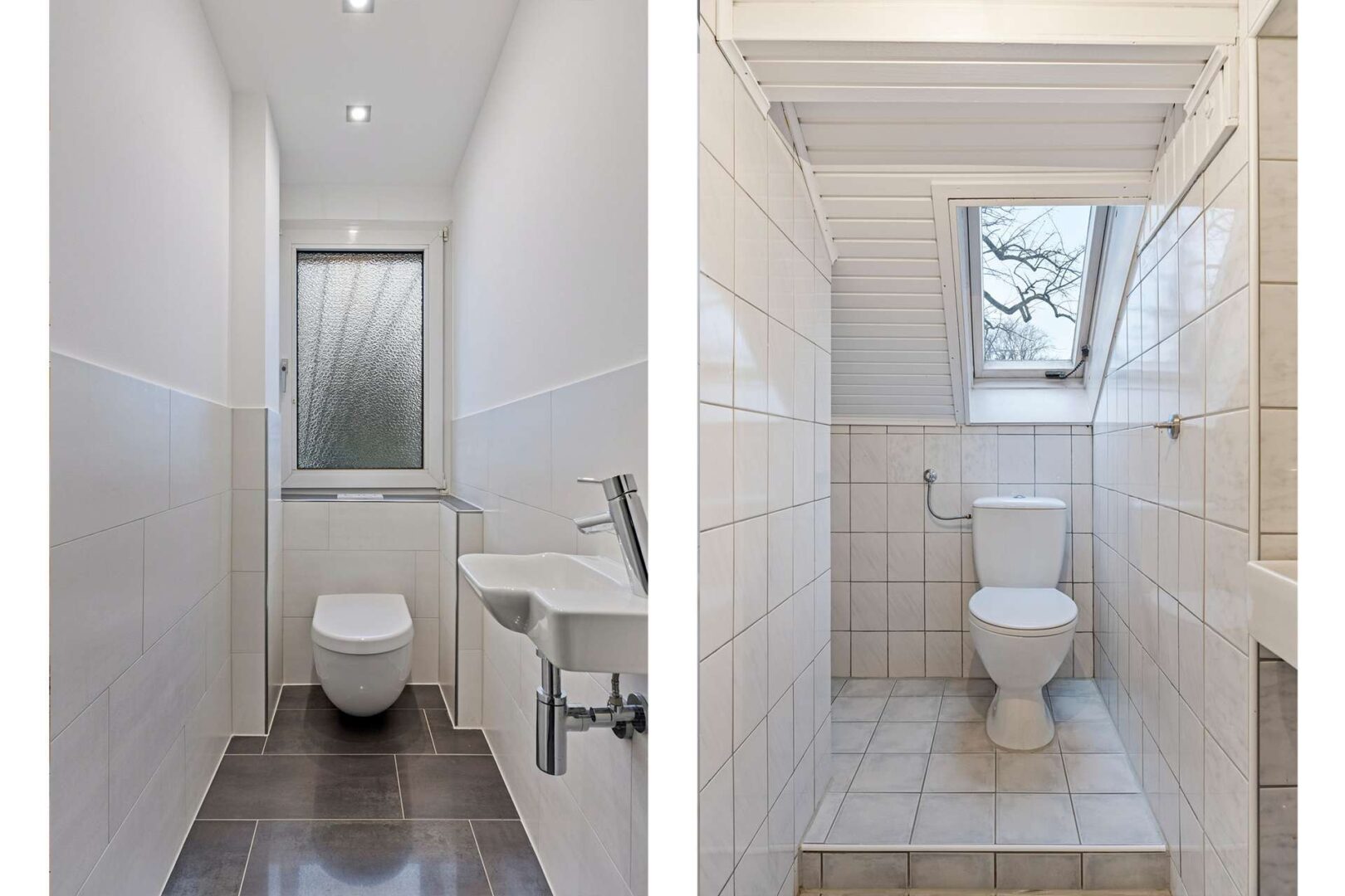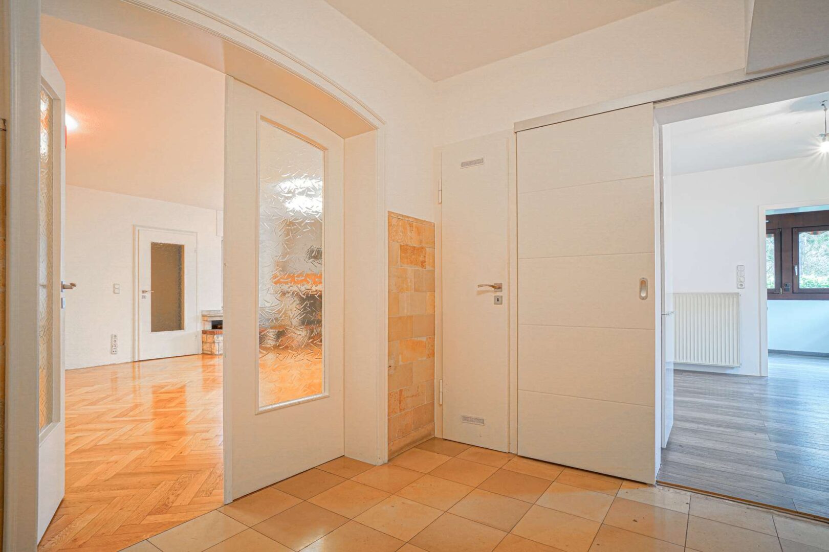 Mit ihrer durchdachten Raumaufteilung eignet sich die Villa sowohl als großzügiges Einfamilienhaus als auch – je nach Bedarf – für eine mögliche Teilung in zwei Wohneinheiten. Im Erdgeschoss erwarten Sie ein repräsentatives Wohnzimmer, eine angrenzende Küche, ein geräumiges Schlafzimmer und ein modernisiertes Tageslicht-Duschbad. Ein weiteres Schlafzimmer mit eigenem WC befindet sich im Souterrain.