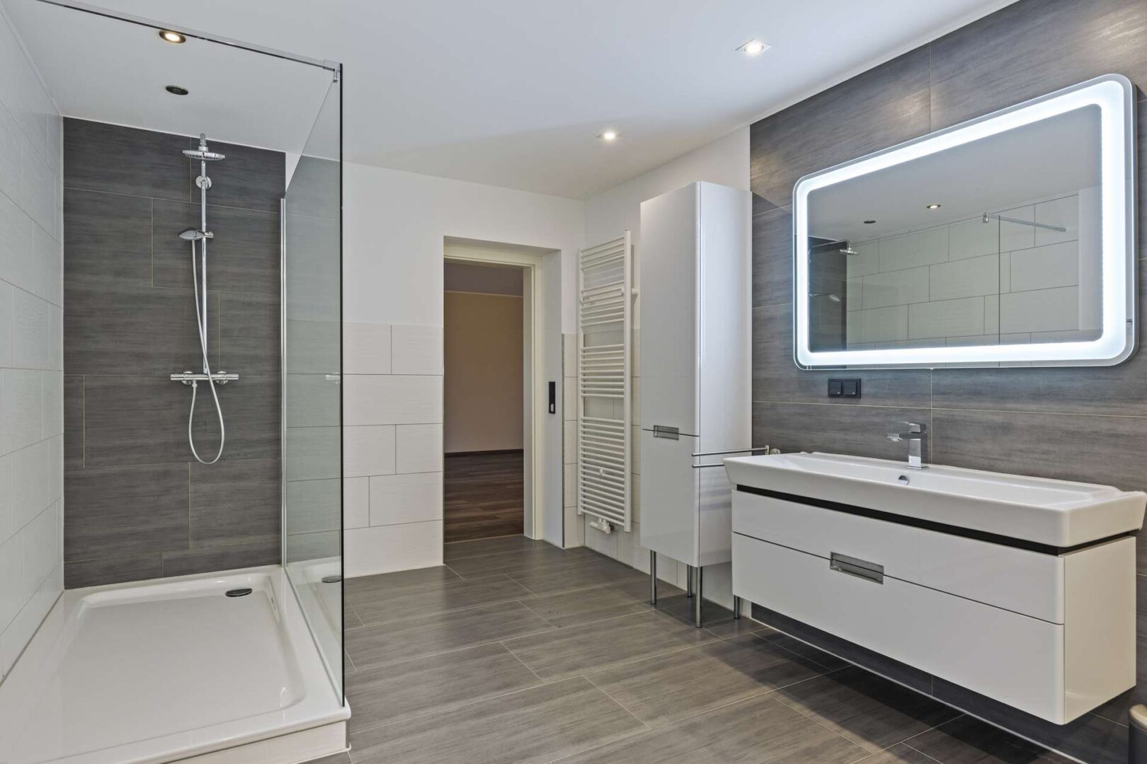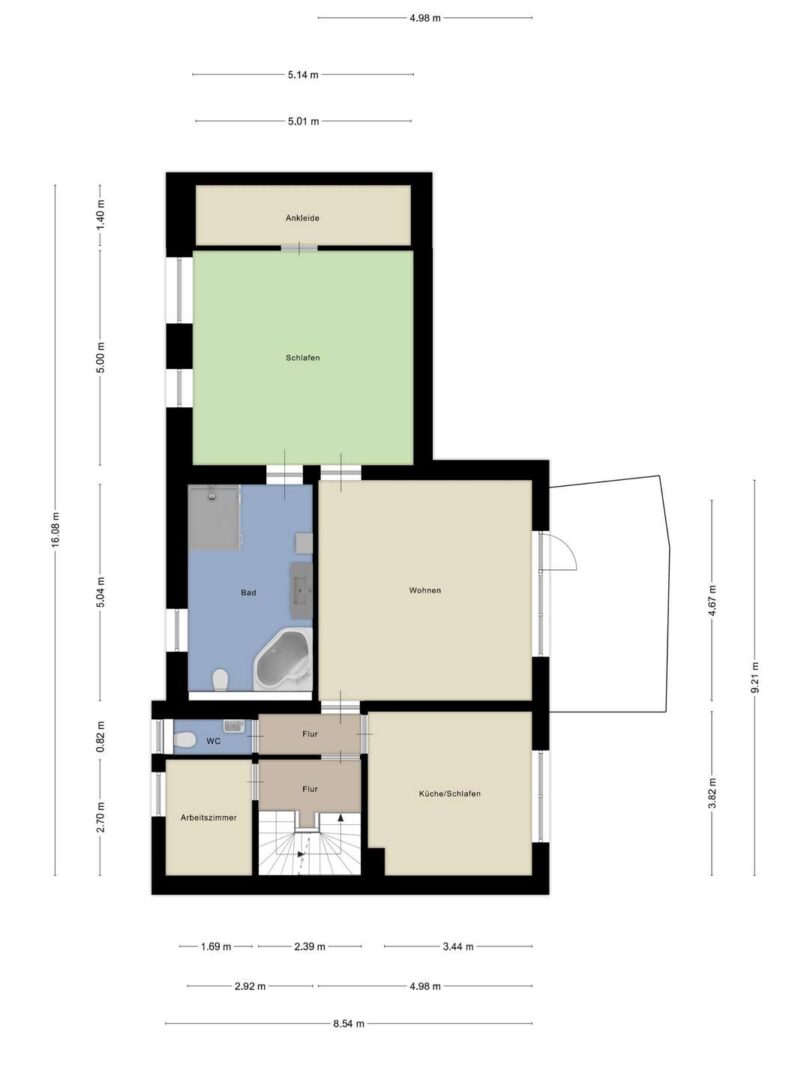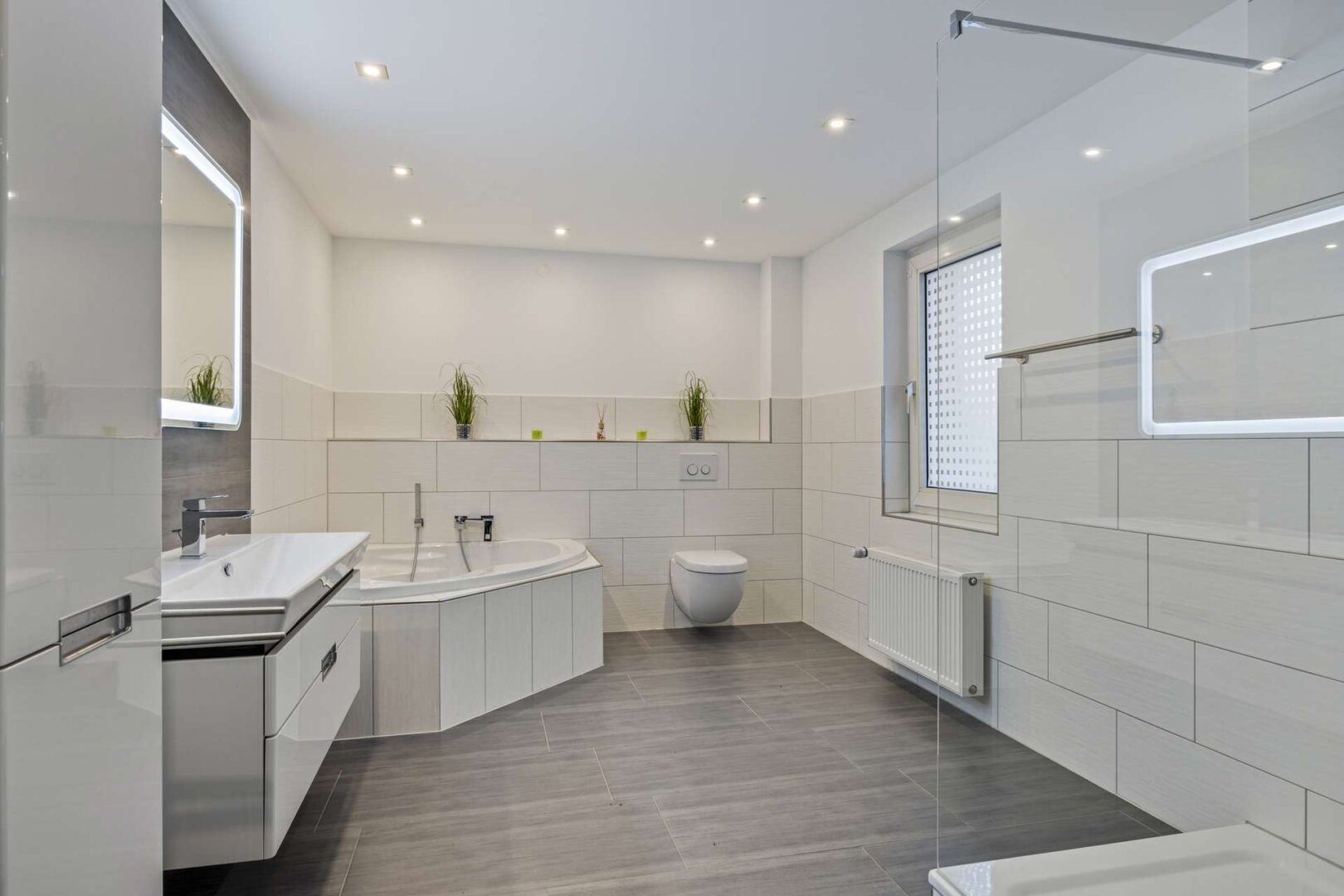 Mit ihrer durchdachten Raumaufteilung eignet sich die Villa sowohl als großzügiges Einfamilienhaus als auch – je nach Bedarf – für eine mögliche Teilung in zwei Wohneinheiten. Im Erdgeschoss erwarten Sie ein repräsentatives Wohnzimmer, eine angrenzende Küche, ein geräumiges Schlafzimmer und ein modernisiertes Tageslicht-Duschbad. Ein weiteres Schlafzimmer mit eigenem WC befindet sich im Souterrain.
