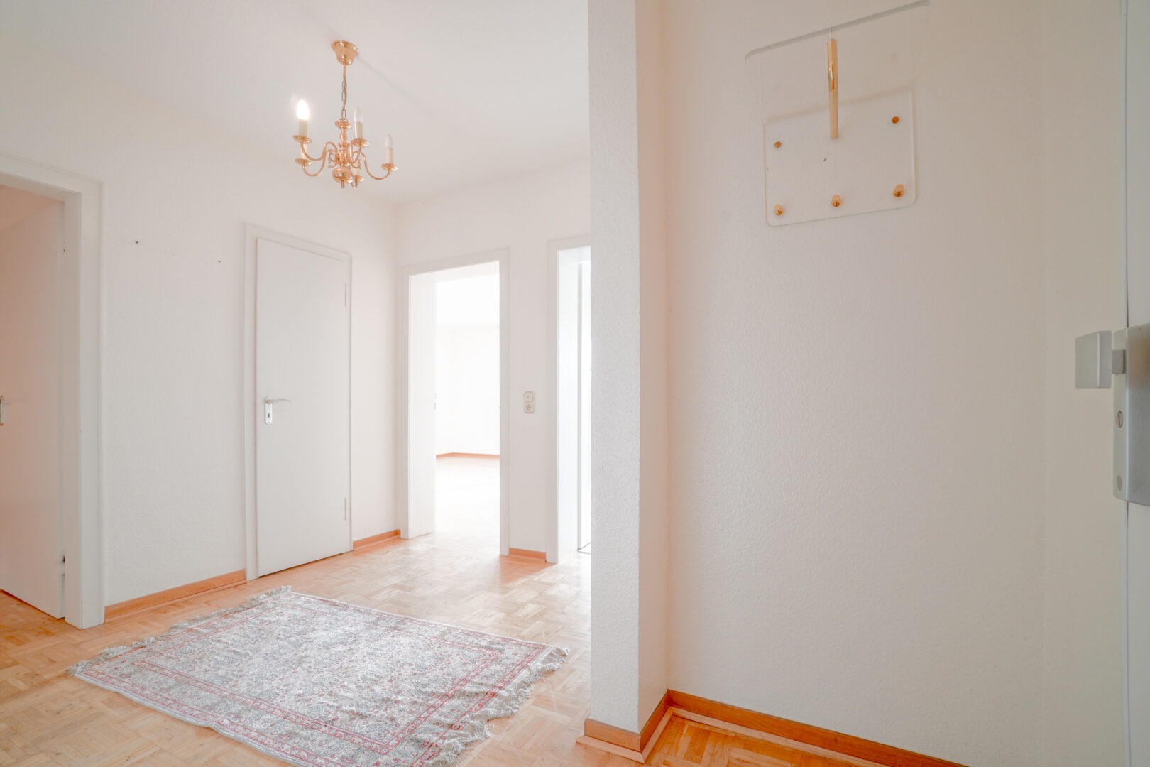 Die Wohnung besticht durch einen hochwertigen Echtholz-Eichenparkettboden, welcher eine behagliche Atmosphäre schafft. Dank der großen Fensterflächen wirkt die Wohnung freundlich und einladend.