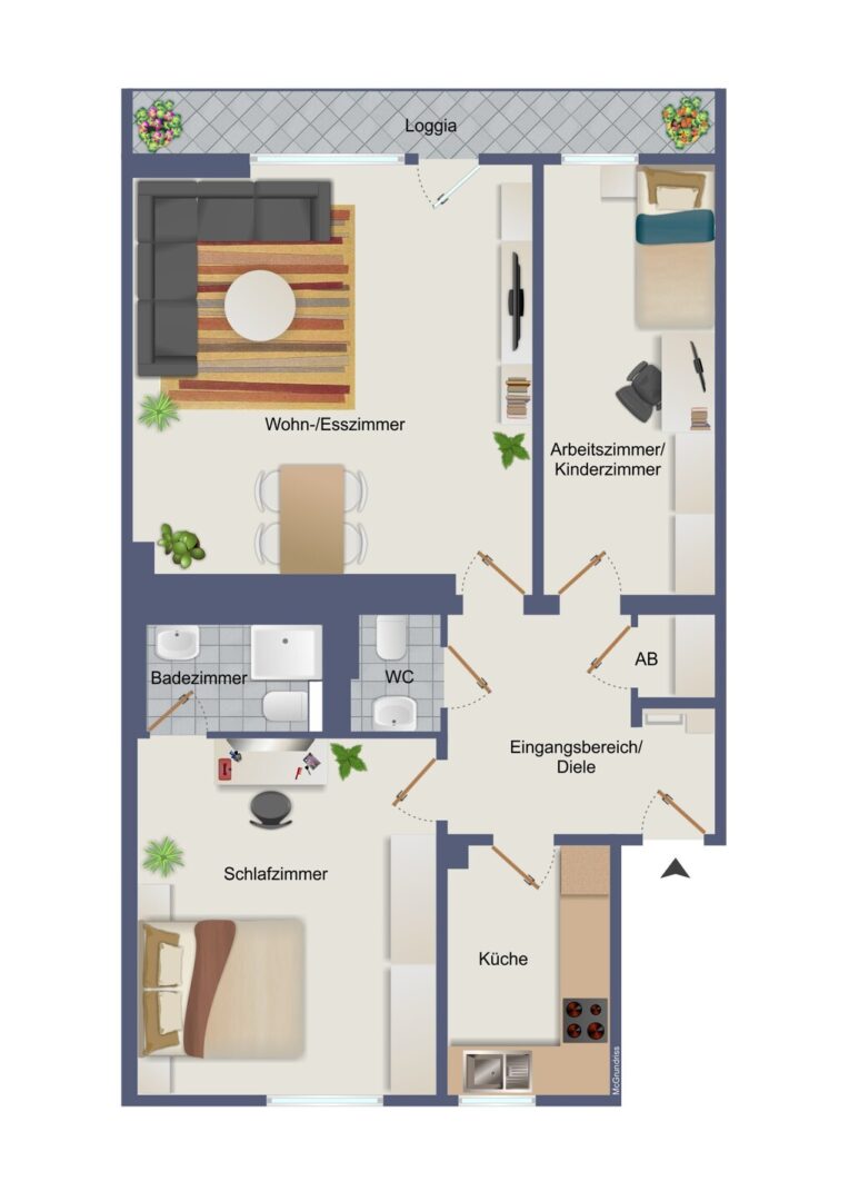 Eine durchdachte Raumaufteilung bietet Platz für individuelle Bedürfnisse, sei es für eine kleine Familie oder für Paare mit dem Wunsch nach einem zusätzlichen Raum für Wohnen, Schlafen oder Arbeiten.